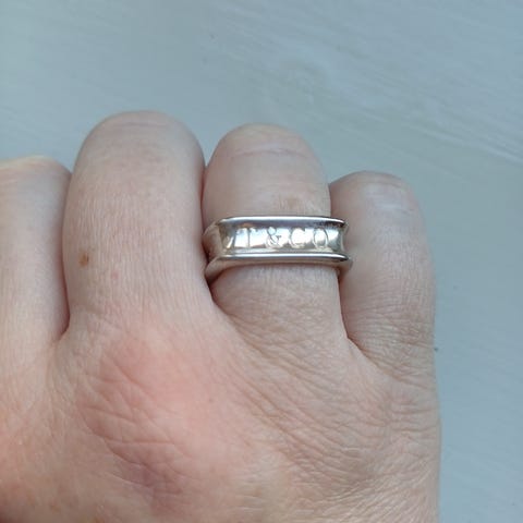 Tiffany & Co. Olive Leaf Bangle i sølv 925, unisex, længde 16 cm, bredde 2,6 cm, vægt 28,7 g, brugt i god stand, ingen sten, ingen laboratorierapport. Klik på den blå "gå til varen" knap, for at købe eller byde på denne vare. Den samlede pris vil blive vist inden du afgiver dit bud.
