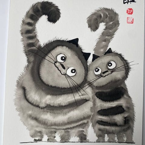 Tegning, original i kinesisk blæk, håndsigneret, størrelse 30 × 40 cm