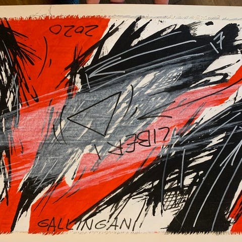 Olie på lærred-maleri af Antonio Gravina (1934/2011) måler 80x60; med den medfølgende ramme som gave måler det 83x103.