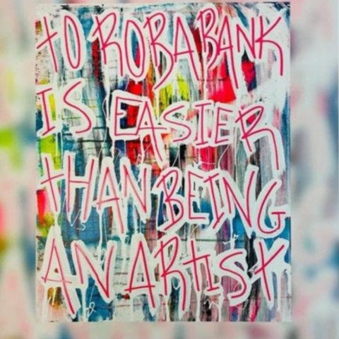Profilbilledet, der minder om Dick Tracy, trækker på verdenen af amerikanske tegneserier, som ofte optræder i hans arbejde. Bogstaverne “G” og “R,” begyndelsen af et ord—formentlig “graffiti”—giver en subtil hilsen til hans rødder som Bronx-forfatter.