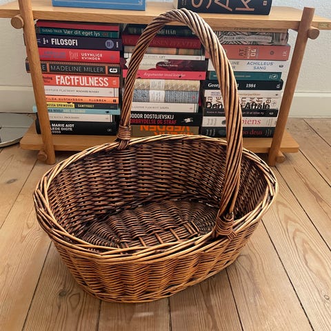 Gammel svensk vasketøjskurv med 1 defekt håndtag 225kr. Store kurve med hank 125kr. Lille kurv med hank 75kr. Div små brødkurv 25kr stk