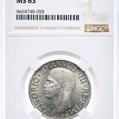 Tre verdensmønter fra Kongeriget Italien med Vittorio Emanuele III, 1 lira Quadriga, årstal 1915, 1916 og 1917, ikke-graderede og forseglet af Numismatica Subalpina. Klik på den blå "gå til varen" knap, for at købe eller byde på denne vare. Den samlede pris vil blive vist inden du afgiver dit bud.