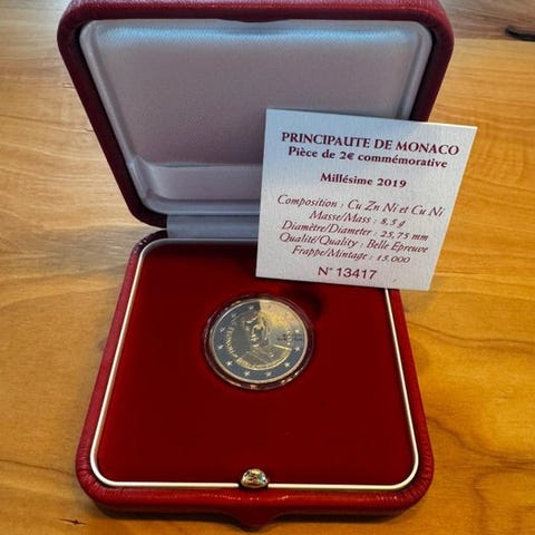 2019 - 10€ mindemønt fra Monaco med certifikat.