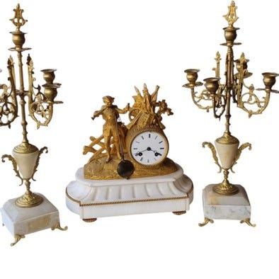 Ur- og garnituresæt (3) - Doppo François Moreau - Marmor, Metal, Råzink - 192...