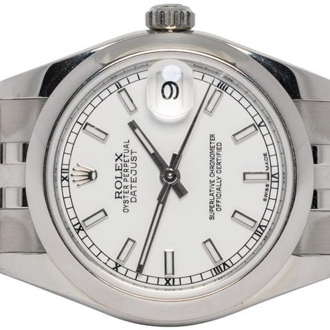 Rolex Datejust 31 damesur med datovisning. Uret kommer i æske med tilhørende Rolex-brochurer og certifikat, se billeder. Det mekaniske urværk går med en nøjagtighed på få sekunder over 24 timer (øjebliksbillede).