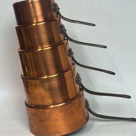 Altes 2teiliges Kochgeschirr in Form von Kupfertöpfen mit Deckel und mit Messinggriffen 2fach vernietet, außen alle Kupfer, innen alle verzinkt- siehe Fotos, 2 Kochtöpfe in unterschiedlichen Grössen, teils gereinigt, ein schönes Konvolut, Herkunftsland Switzerland, ein Teil unten markiert mit *Spring Made in Switzerland + Hirschemblem, Alter ca.1980/1990er Jahre, Zustand gebraucht ogt gut, Alters-und Gebrauchsspuren vorhanden in Form von Kratzern-siehe die Fotos, sie sind Bestandteil der Auktion, Gewicht zusammen ca.3,8kg, Neupreis um 495.-Euro.