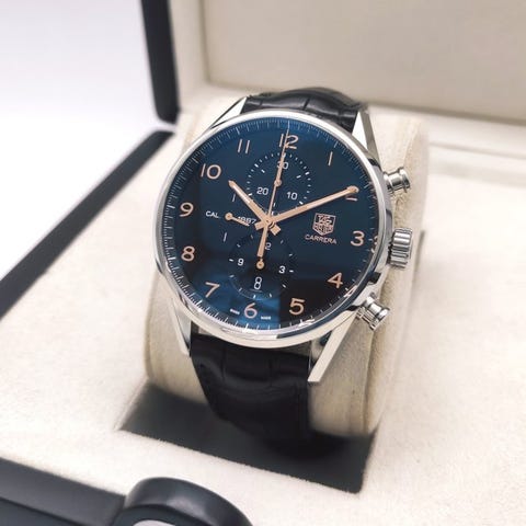 TAG Heuer Carrera Calibre Heuer 02 blå urskive, reference CBN2011-0, 42 mm stålskal, automatisk bevægelse, herre, 2020+, i meget god stand med mindre brugsspor, originalt stålarmbånd og spænde, ingen æske eller papirer, forsendelse forsikret. Klik på den blå "gå til varen" knap, for at købe eller byde på denne vare. Den samlede pris vil blive vist inden du afgiver dit bud.