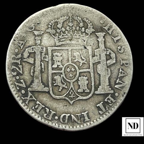 2 Reales af Fernando VII, 1809, Santiago mint, Spanien; vægt 6,41 g sølv; tilstand uden certifikat. Klik på den blå "gå til varen" knap, for at købe eller byde på denne vare. Den samlede pris vil blive vist inden du afgiver dit bud.