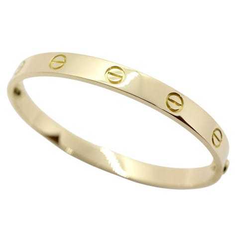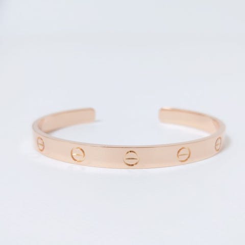 Cartier Love armbånd lille model i rosaguld (18K), unisex, størrelse 17, bredde 3,8 mm, samlet vægt 18,6 g, i meget god stand med små brugsspor, uden laboratorierapport. Klik på den blå "gå til varen" knap, for at købe eller byde på denne vare. Den samlede pris vil blive vist inden du afgiver dit bud.