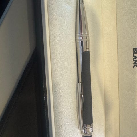 En ny og aldrig brugt Montblanc kuglepen. Model Starealker Douè, sort og stål. Fremstår stadig med æske og vejledning. Aldrig brugt og altid opbevaret i sin personlige etui.