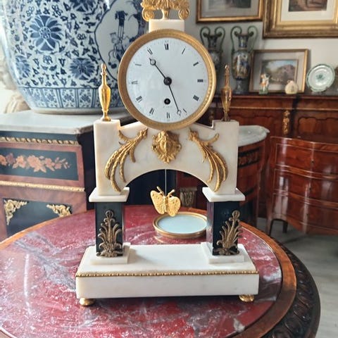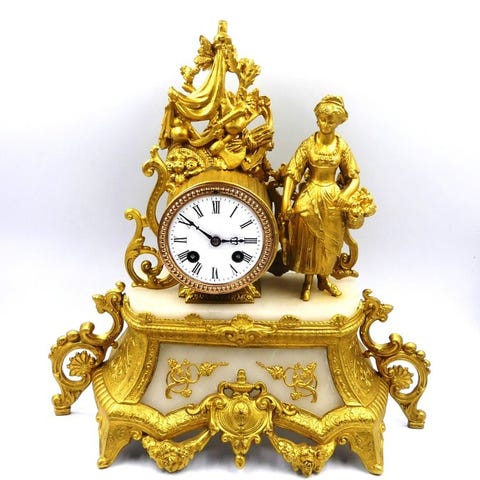 Pendulur af rødt ådret marmor med hvid/grå åretegning, Frankrig, anslået periode 1850–1900, mekanisk urværk, slår hvert halve time med en klokke, mål 47 x 32 x 15 cm, vægt 7 kg, optræksnøgle medfølger, i god brugt stand med få ældningstegn, går og slår. Klik på den blå "gå til varen" knap, for at købe eller byde på denne vare. Den samlede pris vil blive vist inden du afgiver dit bud.