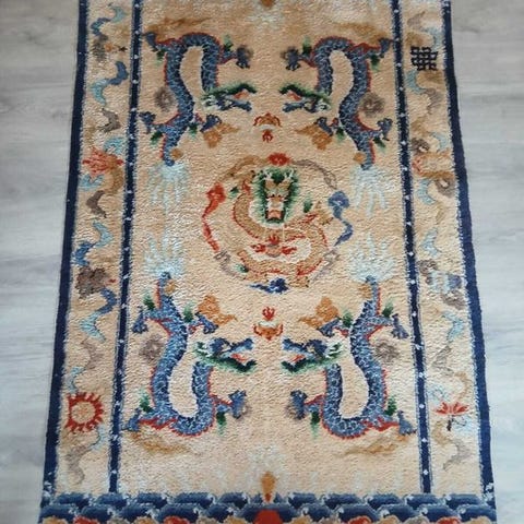 Håndgeknoftet rengjort kinesisk Peking-tæppe fra Kina.