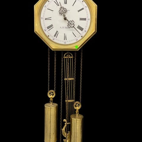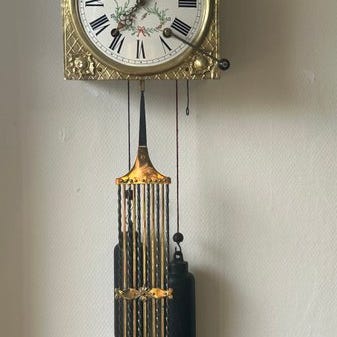 Romanet Morbier vækkeur i messing med krystal, estimeret periode 1950–1960, mål 18 × 9,5 × 8 cm, forgyldt messing, fremragende stand, med nøgle og krystaller i perfekt stand. Klik på den blå "gå til varen" knap, for at købe eller byde på denne vare. Den samlede pris vil blive vist inden du afgiver dit bud.