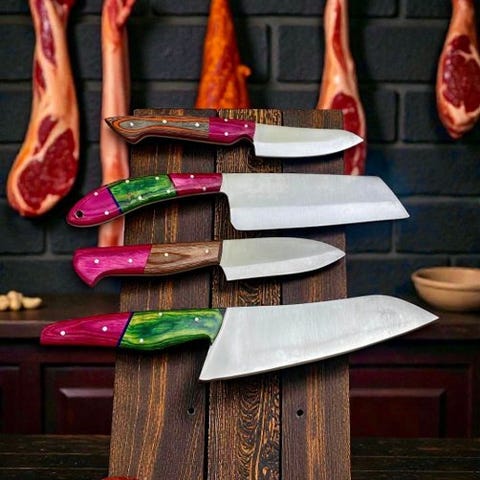 Vi er begejstrede for at præsentere et eksklusivt sæt af TO håndlavede japanske stilknive fra en verdensberømt professionel samling—et must-have for kokke, samlere og udendørsentusiaster! Disse specialsmidede blade, omhyggeligt fremstillet, kombinerer tidløs kunsthåndværk med enestående ydeevne, hvilket gør dem til en værdifuld tilføjelse til ethvert kongeligt køkken eller campingudstyr. Hvorfor disse knive skiller sig ud: Elitehåndværk: Smidt af Shirogami Old stål, kendt for sin enestående hårdhed (HRC 52 til 57) og skarpe kant. Disse blade leverer præcisionsskæring og langvarig holdbarhed til enhver opgave, fra delikat skæring til robust udendørs hakning.