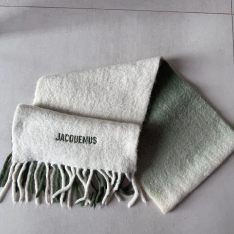 ● En avantgarde Jacquemus-frakke fra efterårs/vinter 2017-kollektionen 'L’Amour d’un Gitan', skulptureret i en rig kulgrå uld- og viscoseblanding med en overdreven foldet krave, rummelige ærmer og en dramatisk udskåret kant, der forvandler vintervarme til arkitektonisk elegance. ●
