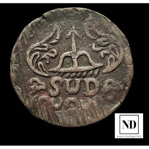 Portugal, 1677 Lissabon, 3. Typ, A/3 Point, Ikke klassificeret kobbermønt, vægt 8,98 g, diameter 32,25 mm, stand XF/XF+. Klik på den blå "gå til varen" knap, for at købe eller byde på denne vare. Den samlede pris vil blive vist inden du afgiver dit bud.