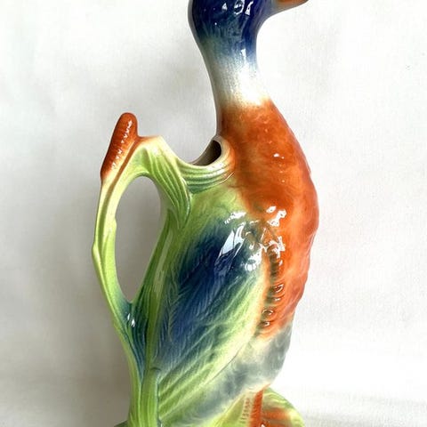 Fajanse fremstillet og håndmalet med blomsterdekoration.
