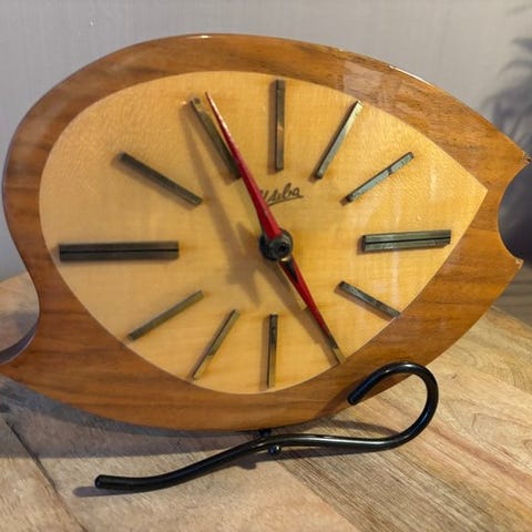 Wuba bordurklok fra Nederlandene (Almelo), anslået periode 1950–1960, træ kabinet med messingsdetaljer, mekanisk urværk, optrækningsnøgle, 21 x 15,5 x 7 cm, 718 g tung, længerevarende drift, uden slag, i god brugt stand og i funktion. Klik på den blå "gå til varen" knap, for at købe eller byde på denne vare. Den samlede pris vil blive vist inden du afgiver dit bud.