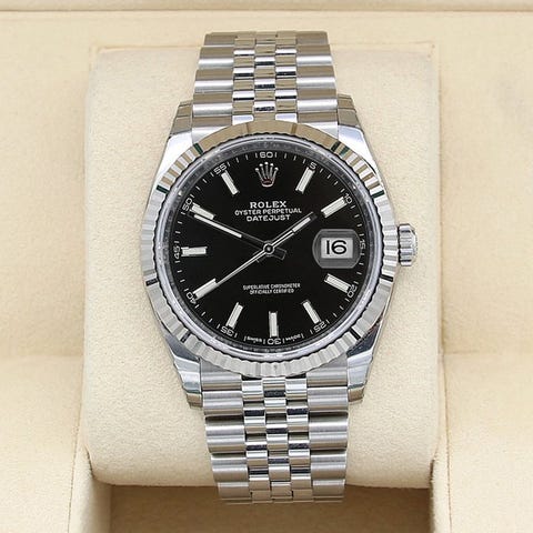 Rolex Datejust i 36 mm, Rolesor-konfiguration (stål og hvidguld) og oyster-rem.