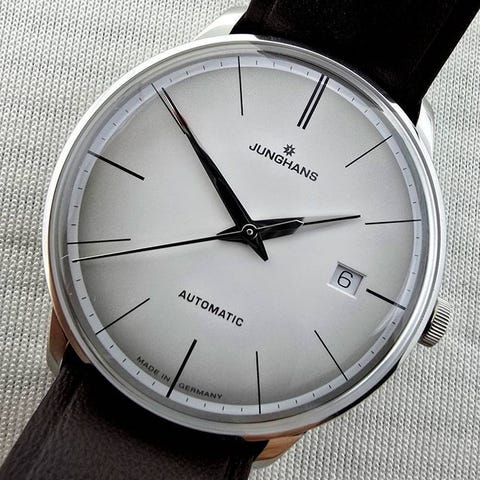 Meister Driver Day-Date armbåndsur i rustfrit stål, kasse 41 mm, automatisk urværk (kaliber J880.4) med 25 perler, anthracit skive, beige læderrem, dag dato kl. 12, original æske og papirer, garanti, ny. Klik på den blå "gå til varen" knap, for at købe eller byde på denne vare. Den samlede pris vil blive vist inden du afgiver dit bud.