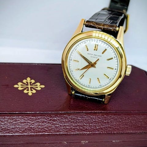 Patek Philippe Calatrava reference 2568J fra 1950'erne, 33 mm manuel optræk guld ur med læderrem, god stand, ingen æske eller papirer, forsikret forsendelse. Klik på den blå "gå til varen" knap, for at købe eller byde på denne vare. Den samlede pris vil blive vist inden du afgiver dit bud.
