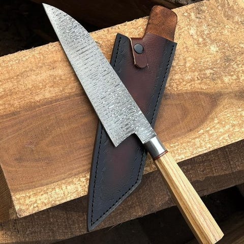 Køkkenkniv - Japansk brystkniv (0147) - VG10-stål, Less Steel og naturligt tr...