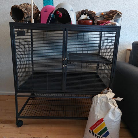 Helt fantastisk bur som sikrer stor bevægelses frihed til små aktive dyr.