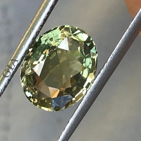Demantoid ædelsten, 1 sten, samlet vægt 5,38 ct, oval, modifieret brillant snit, gennemsigtig, farve gulgrøn, ingen varmebehandling, dimensioner ca. 5,96×4,75×2,96 mm til 6,22×4,91×3,24 mm, ICA GemLab-rapport TH25G119725. Klik på den blå "gå til varen" knap, for at købe eller byde på denne vare. Den samlede pris vil blive vist inden du afgiver dit bud.