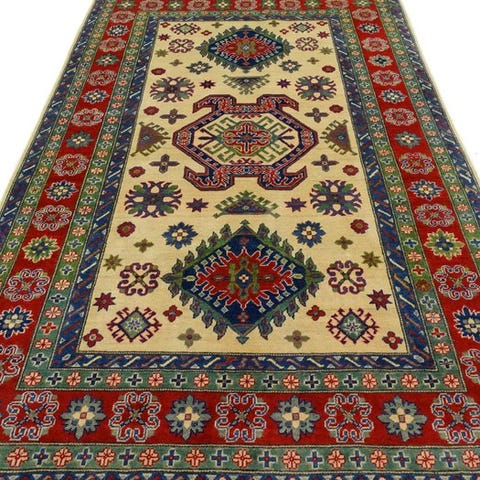 Dette højkvalitets håndknyttede persiske og orientalske tæppe i det markante Kazak-design stammer fra Afghanistan.