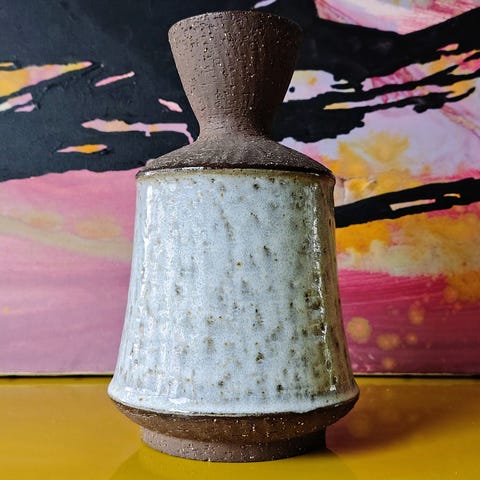 Smuk riflet Michael Andersen vase med grøn og brunlig glasur.