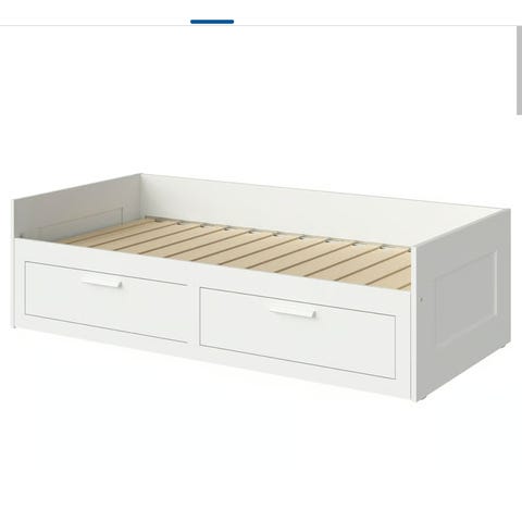 IKEA BRIMNES seng/sovesofa 80x200 cm med opbevaringsskuffer i sort farve. Sengen kan gøres større i bredden. Madrasserne er inkluderet i prisen.