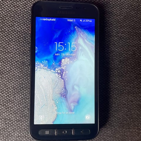Samsung Galaxy XCover 3 smartphone. En robust mobiltelefon med berøringsskærm, kamera og standard funktioner. Designet til brug med Android operativsystem. Virker fint, har en revne i glasset øverst til venstre (se billede). 8 GB hukommelse.