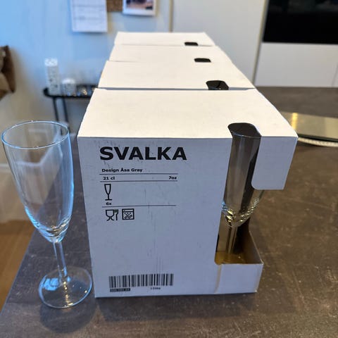 Sælger et stort og ensartet sæt IKEA SVALKA glas, perfekt til fest, bryllup, firmaarrangement, udlejning eller stort hjem.
