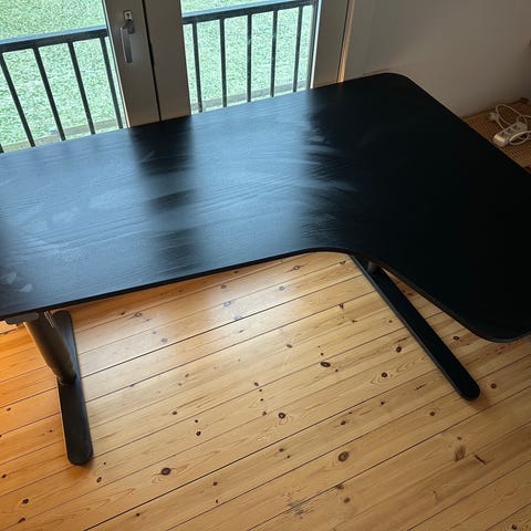 IKEA Bekant hjørne hævesænkebord i sort - venstrevendt. Det er godt brugt og har brugsspor derefter. Kan sende flere billeder tættere på hvis nødvendigt. Bordet er skilt ad ved afhentning.
