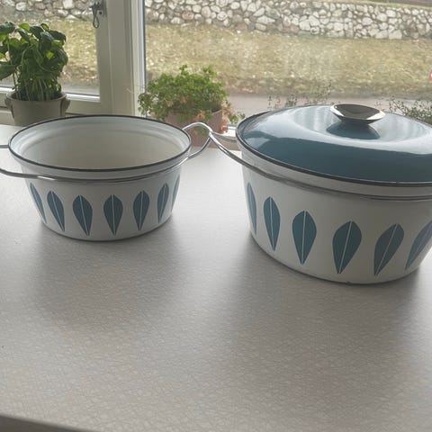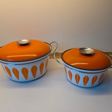 5 flotte Cathrineholm Lotusgryder /kasserolle. Sælges helst samlet, men er ikke rigid, hvis du nu bare ønsker dig én bestemt.