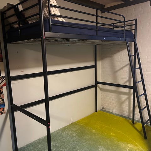 Denne metalkøjeseng er elegant og funktionel, hvilket gør den perfekt til ethvert værelse med begrænset plads. Køjesengen er fremstillet af robust og pulverlakeret metal, så den garanterer fremragende stabilitet og holdbarhed. . Hele sengestellet har en robust konstruktion af metalrør, hvilket gør den langtidsholdbar og egnet til daglig brug. Sengen er skilt ad og står klar til afhentning. Sælges uden madrasser.