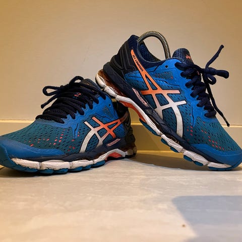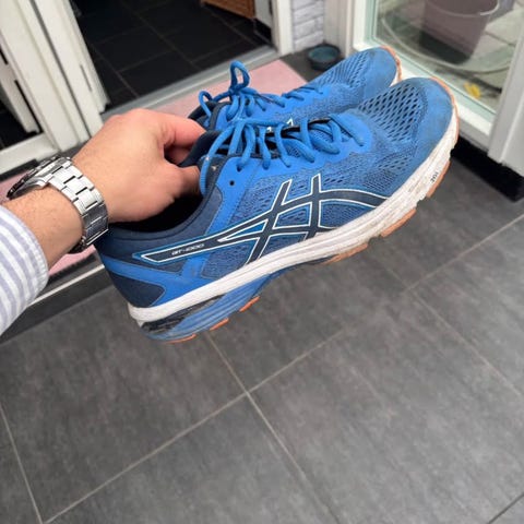 Asics løb sko i blå farve, størrelse 40,5 Skoene er designet til løb og har en robust sål med godt greb, egnet til forskellige underlag.