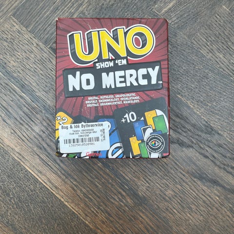 UNO kortspil til 2-10 spillere, velegnet til familier og grupper. Spillet indeholder farverige kort med tal og symboler, designet til underholdning og socialt samvær. Sender ikke for køb under 200 kr.