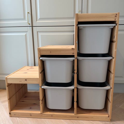 2 stk reoler. Ikea reol (Trofast) med 2 plastkasser. Pris pr reol