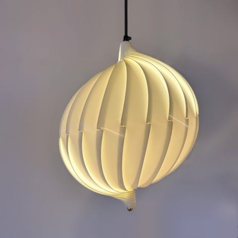 String loftslampe fra 1970 lavet af metal- og plastikbånd