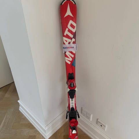 Atomic Redster S9 Race ski med en længde på 124 cm. Ski med bindinger, velegnet til racerløb og præcisionskørsel på pister. Brugt 2 sæsoner