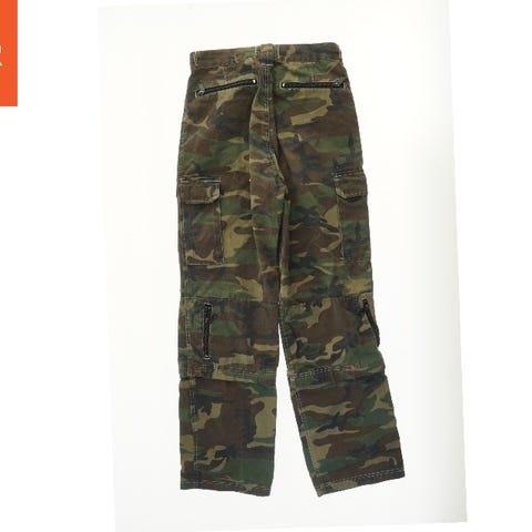 Cargobukser med et klassisk camouflagemønster. Bukserne har flere lommer, herunder lynlåslommer på fronten og siden. Designet er funktionelt, ideelt til udendørs aktiviteter.