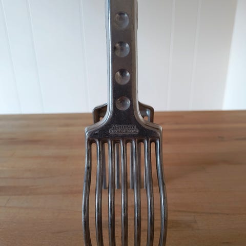 - til udskæring af stegt kød, pølser m.m. - hurtig handling, ensartede skiver, ingen risiko for skader - pladsbesparende låsefjeder|