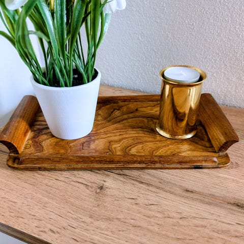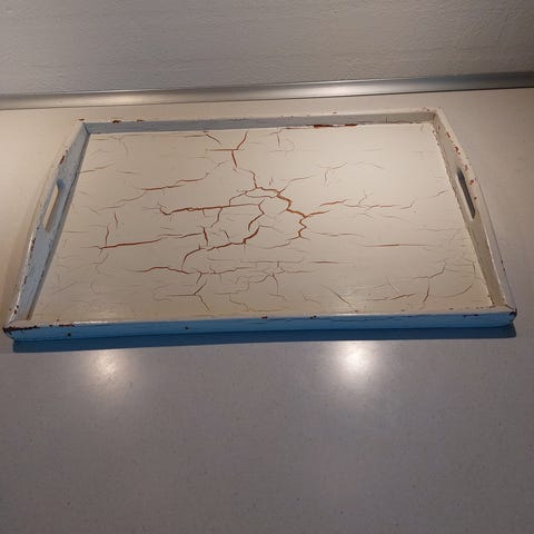 Stor super-retro finérbakke, Virkelig charmerende og sjælden! Fint mønster. Ubetydelige brugsspor - herunder lille revne (se foto). Mål: 48,3 x 37,3 cm.