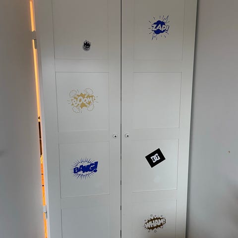 Ikea klædeskab i hvid og bøg. I god kvalitet. Fin stand, men brugt.