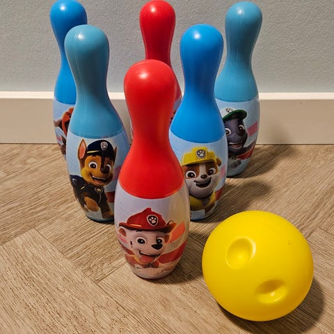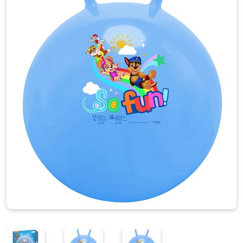 Paw Patrol hoppebold i blå og Peter plus hoppebold i orange farve med håndtag. Fremstillet til børn og egnet til leg og motorisk træning.