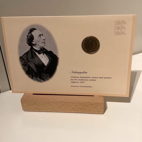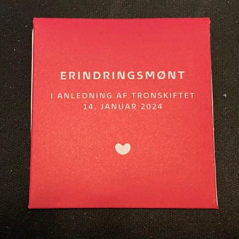 Erindringsmønter 10 kr. Nattergalen 20 kr Troneskiftet 10 kr fra 2025.