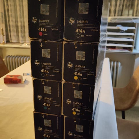 14 stk. HP 824A og 825A tonerpatroner.