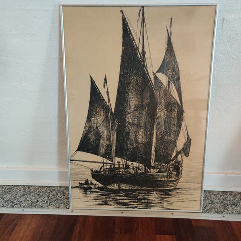 Fulton Marstal plakat med motiv af et skib med sejl. Plakaten er trykt med tekst
