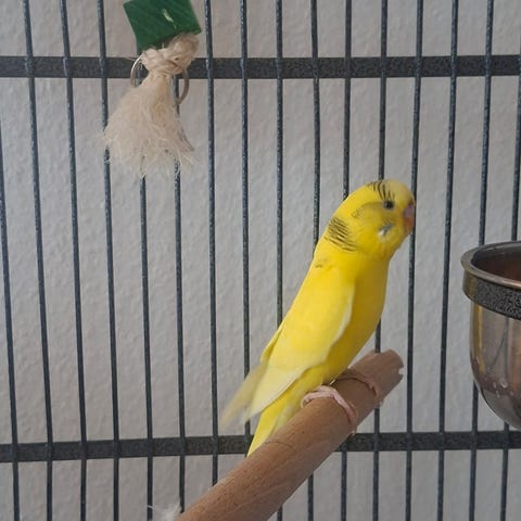 Har altid været vant til åbent bur, så den skal selvfølgelig ikke afsted og lukkes inde i et bur hele dagen.